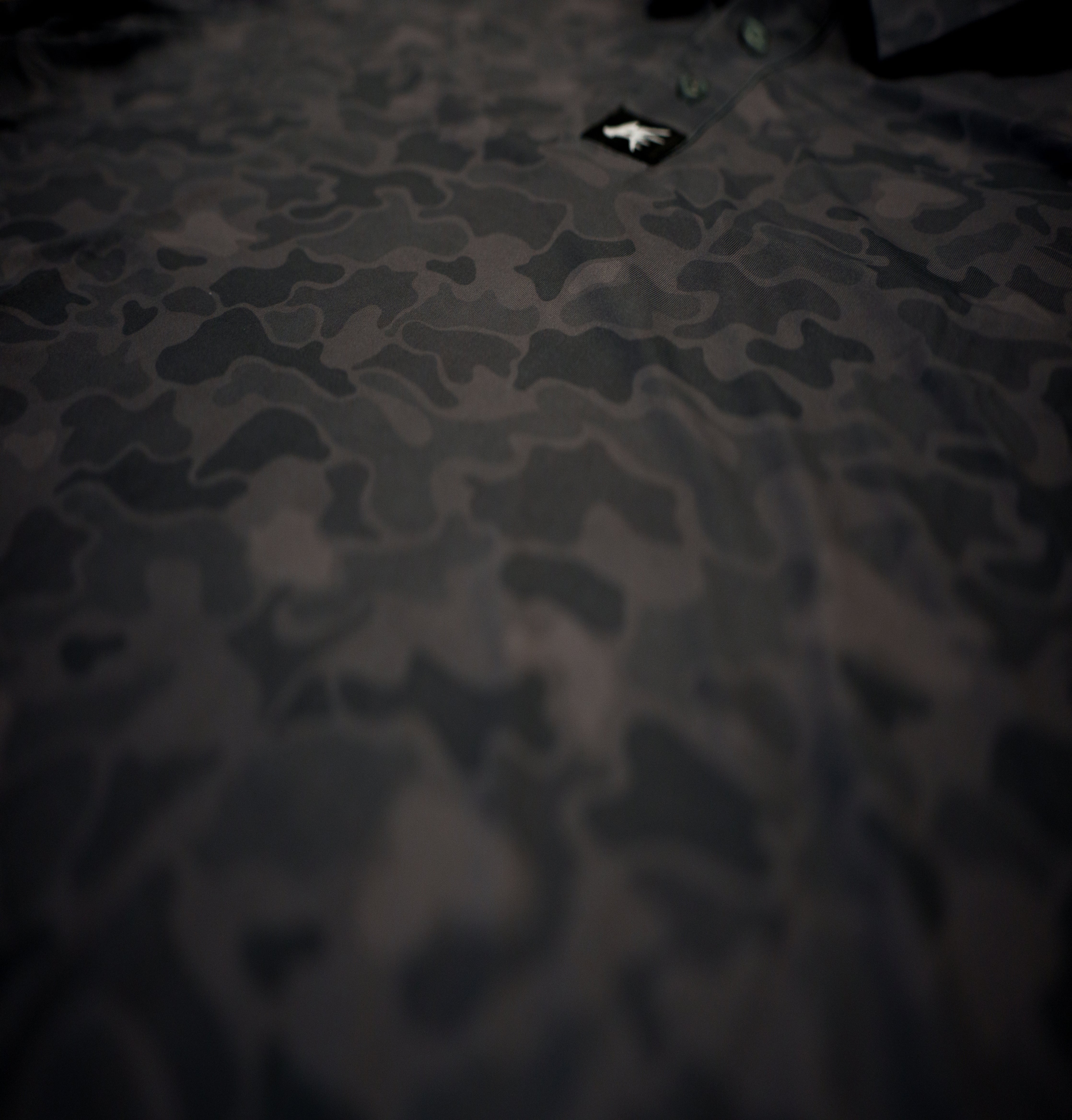 Finished with anti-microbial technology and a DWR stain-resistant coating, this polo is made to move—from early tee times to post-round hangs. The blackout camo pattern adds a bold, tactical edge that turns heads on and off the course.
