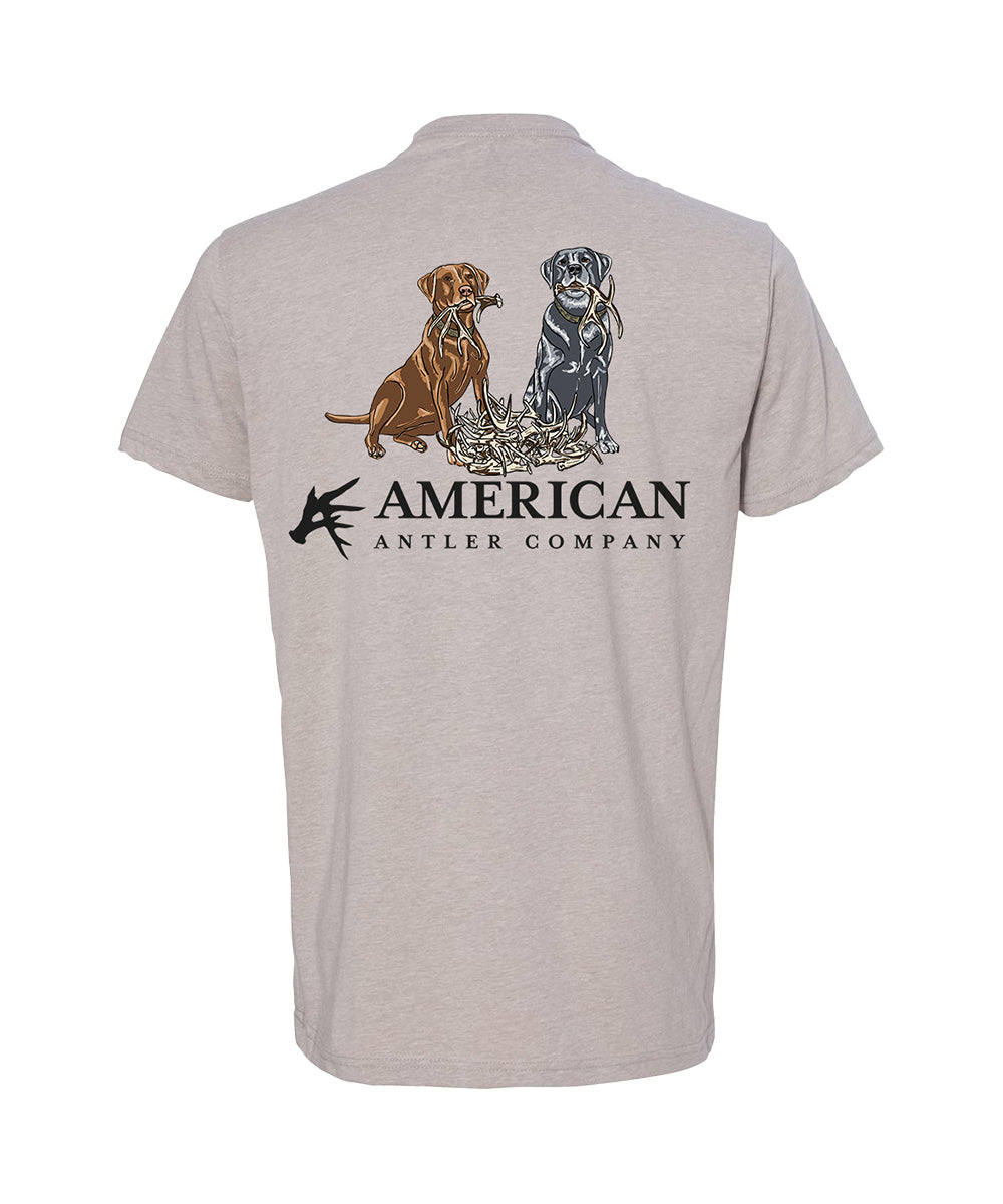 Stay comfortable all day long while shed hunting with our Miles For Piles Tee. Made with 60% polyester and 40% cotton, this pre-shrunk shirt is perfect for any outdoor adventure. The art on the shirt features two Labs who have had a successful day of finding antlers. Don't sacrifice comfort while enjoying your favorite hobby.