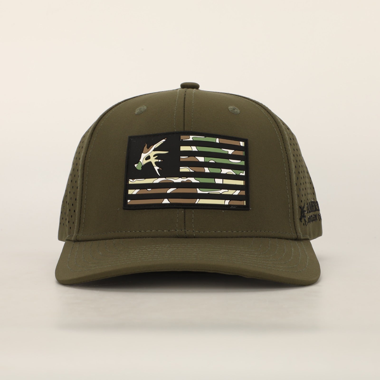 This Performance antler flag snapback features superior materials, designed to keep you comfortable and dry. The sweat-wicking fabric and waterproof PVC patch keep you feeling cool and fresh under the sun, while the comfort sweatband ensures a comfortable fit. The cool Old Skool Camo patch completes the look.