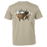 Introducing the Elk Bugle Tee - the perfect addition to any outdoor enthusiast's wardrobe. Featuring the same killer art as our popular elk bugle hat, this tee offers all-day comfort and style. Made for the true experts in outdoor gear, this tee is a must-have for any adventure.