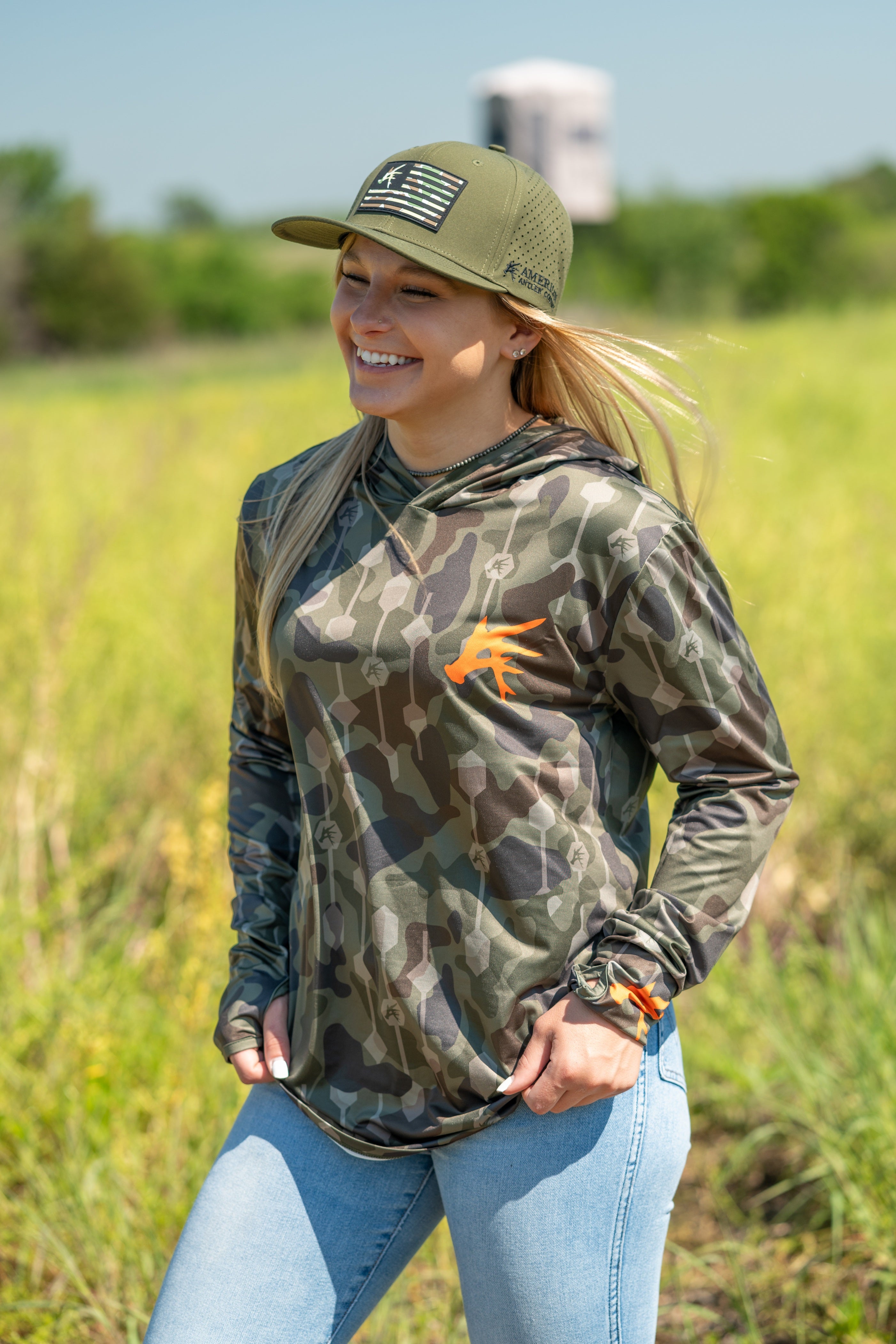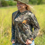 The Vanish Woodland Lightweight Hooded Shirt offers excellent camouflage and comfort for days-long hunting trips. Utilizing high-quality, buttery-soft fabric and 50 SPF sun protection, this shirt helps you vanish with your surroundings to remain undetected. Anti-microbial technology prevents odors to ensure you don't disrupt the wildlife, while thumbholes and wrist holes keep your hands and arms covered. Ideal for the field and everyday life. polyester and spandex blend to never restrict movement on stalks or drawing your bow.