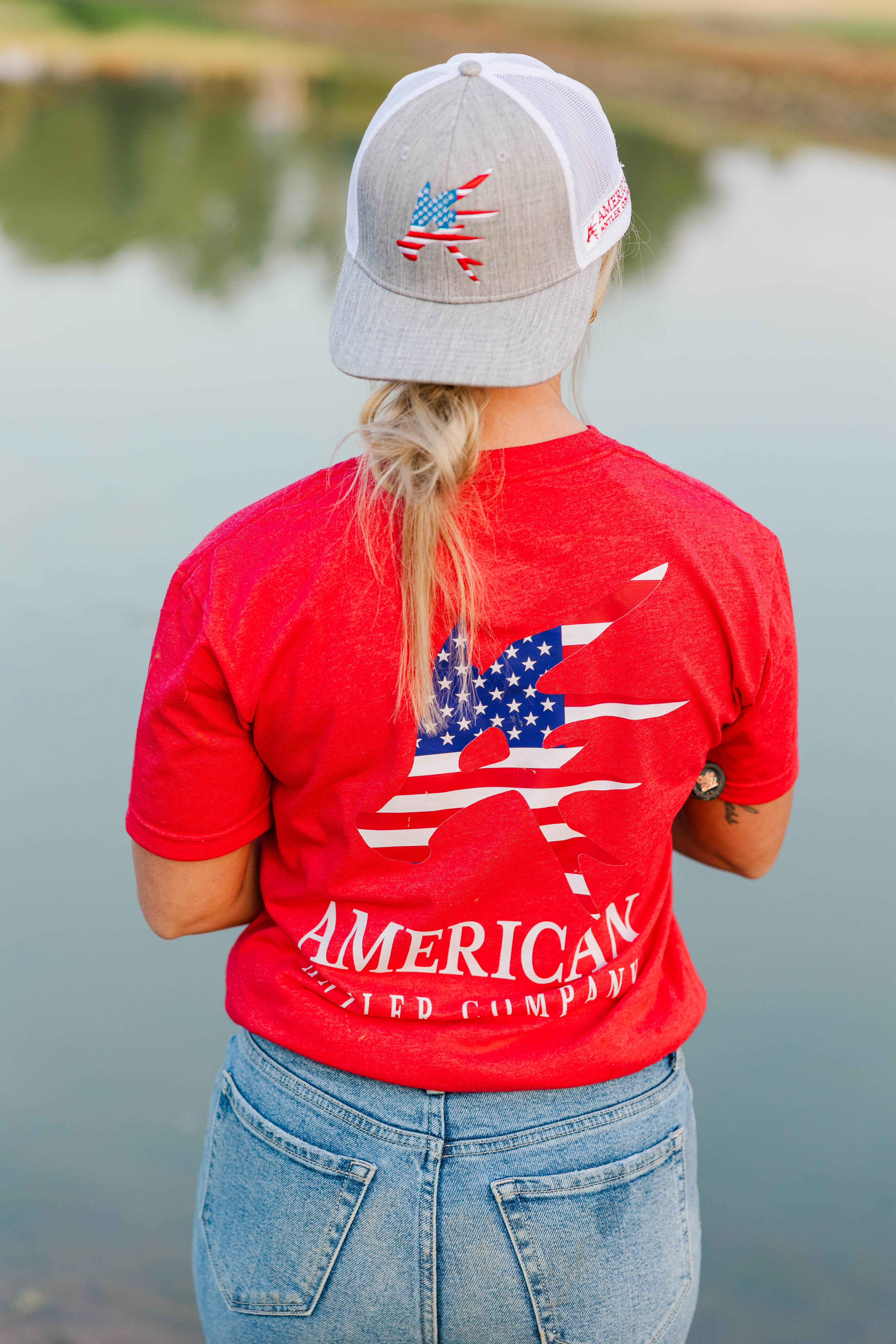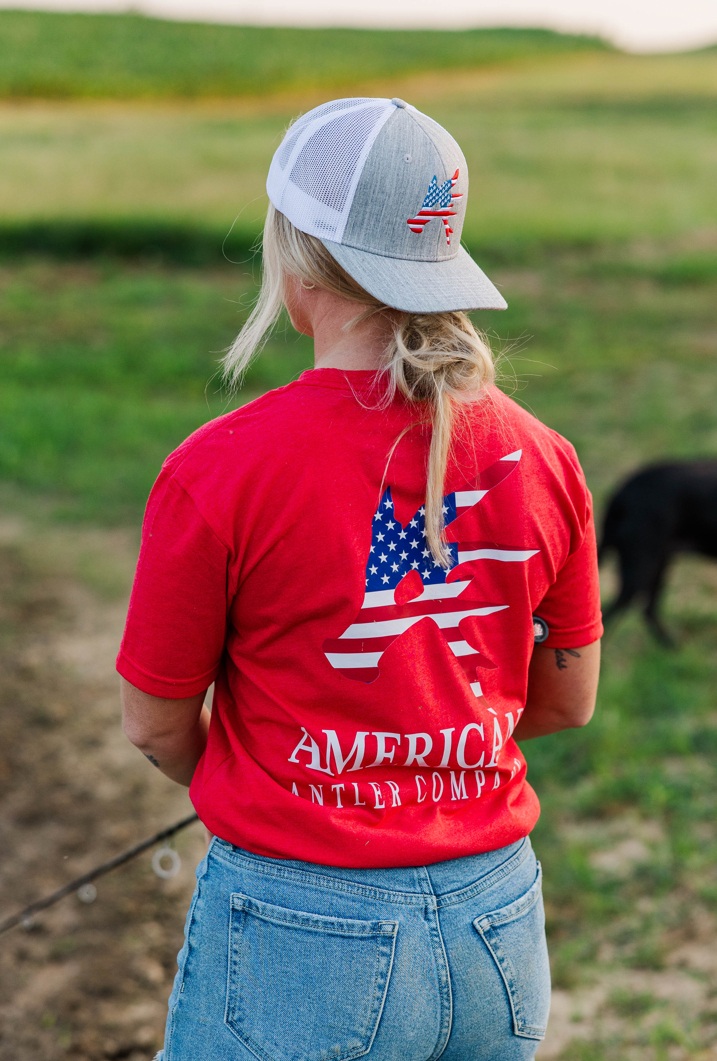 The Patriotic Antler tee a legend in the making. this Ultra soft ring spun cotton and Polyester blend tee is the high quality you have come to expect from American Antler Company. This tee shirt proudly represents our lifestyle all while making Uncle Sam proud.